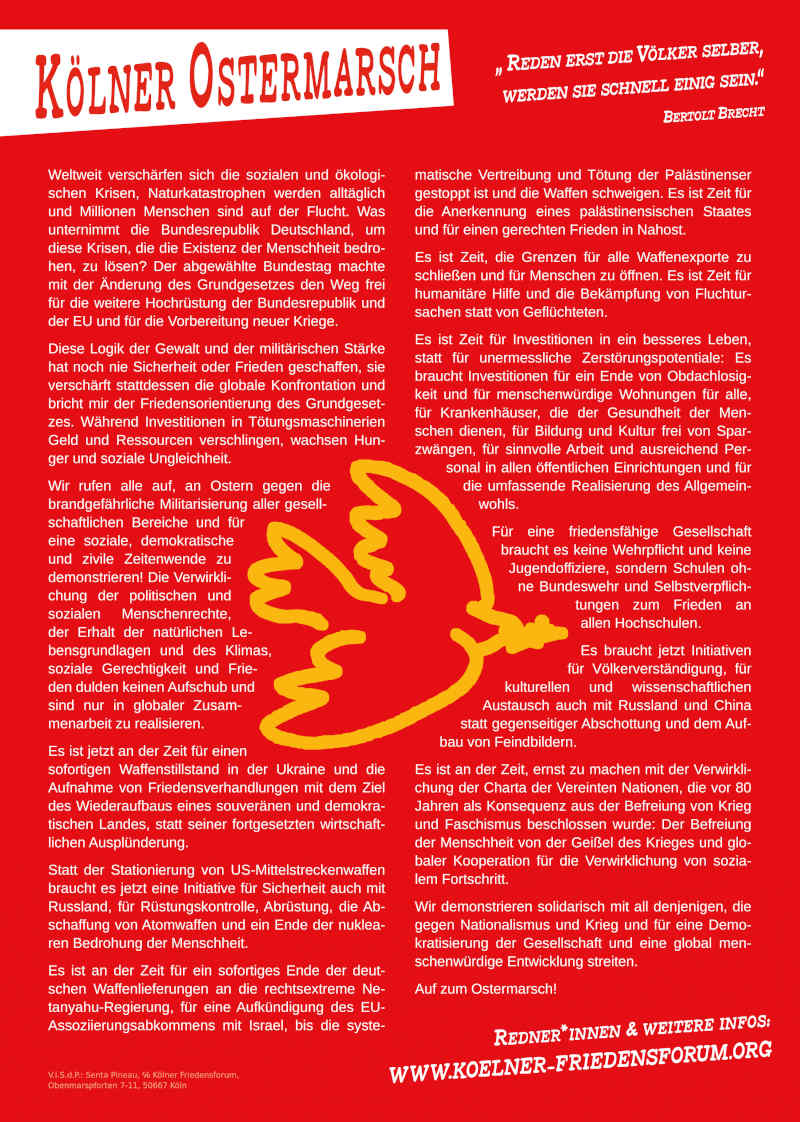 Aufruf zum Kölner Ostermarsch 2025
