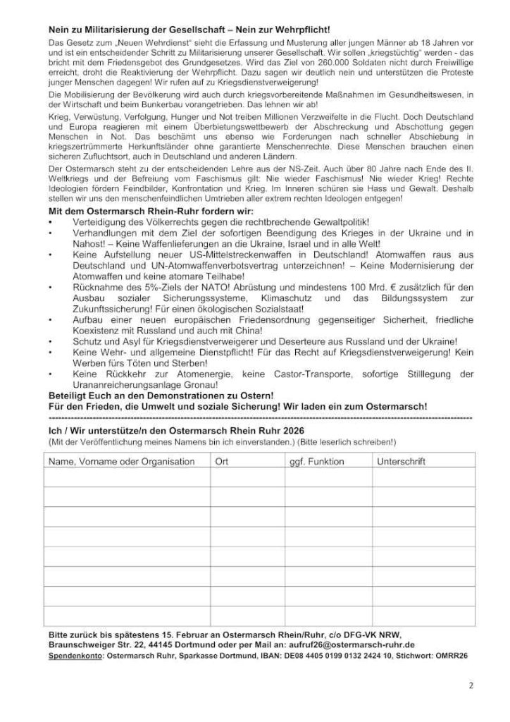 Aufruf zum Ostermarsch Rhein Ruhr 2026